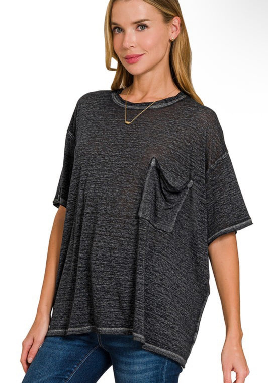 Ash Black Oversized Washed Melange Burnout Raw Edge Tee