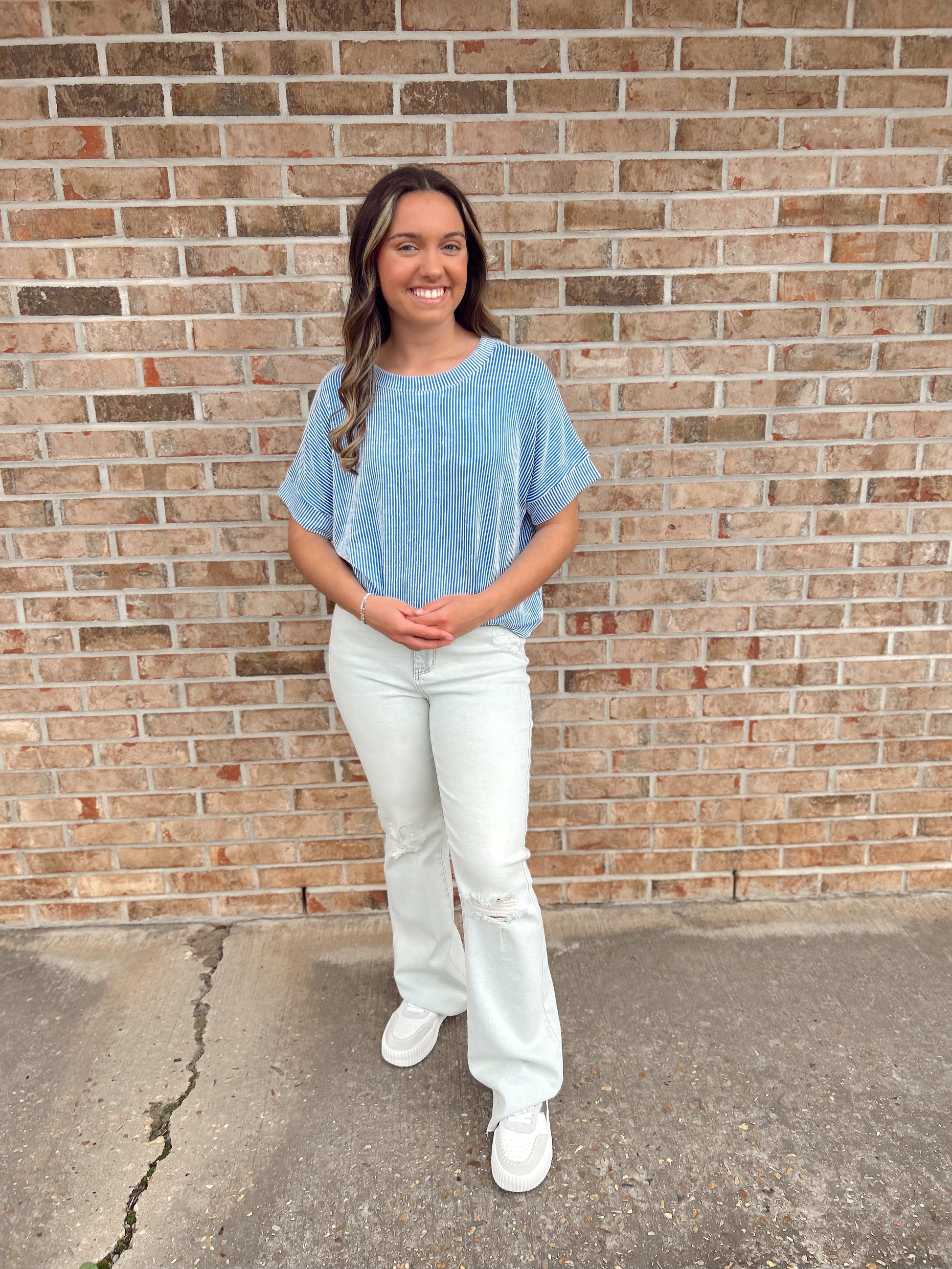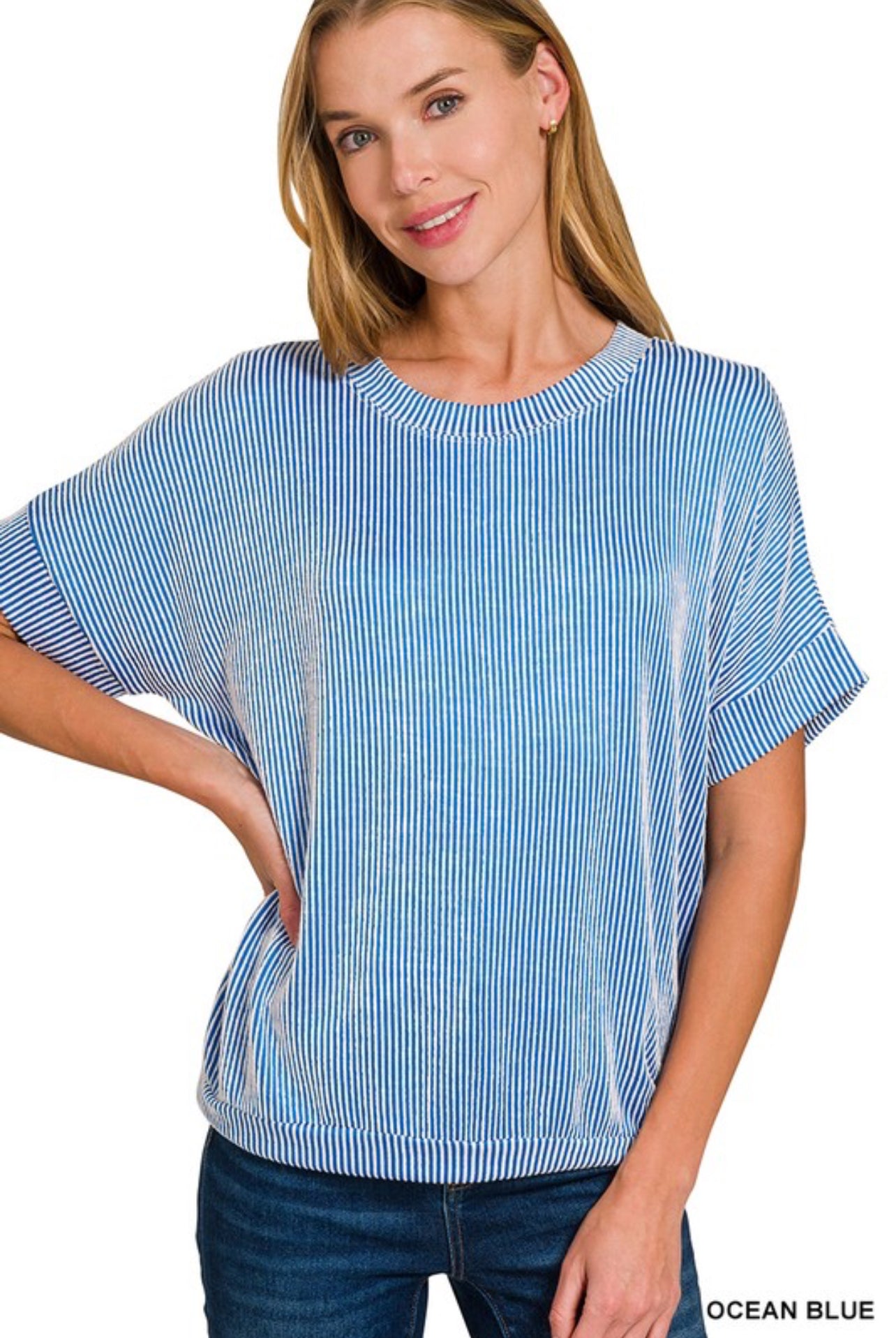 Ocean blue Corded ribbed top